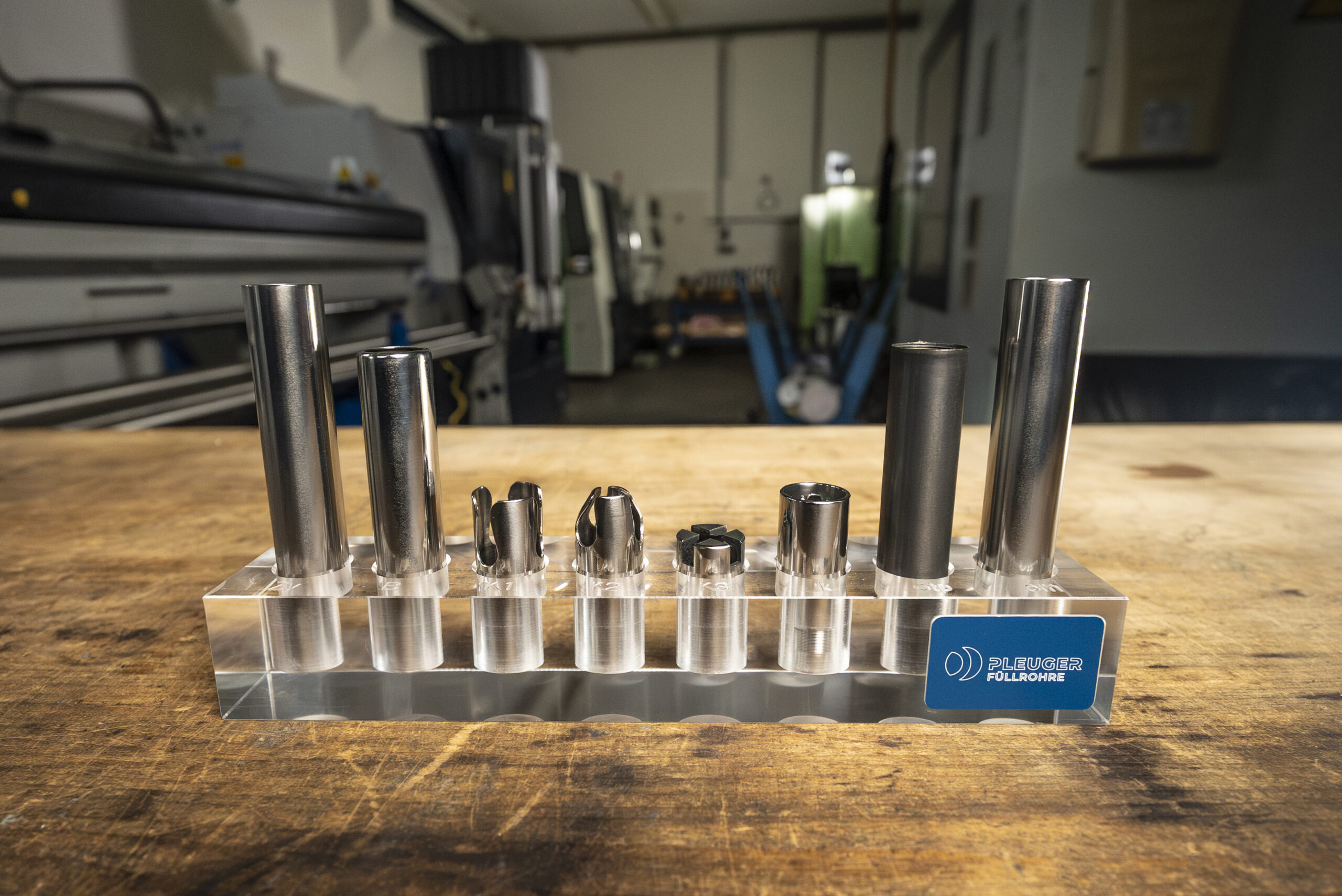 Ein Muster sagt mehr als tausend Worte. Deshalb haben wir bei Pleuger einen neuen Weg gefunden, unsere Lösungen für Füllrohre und Abdrehtüllen noch anschaulicher zu präsentieren: mit einem kompakten Musterblock aus hochwertigem Acrylglas! Darin sind verschiedene Rohrtypen und Rohrausläufe übersichtlich und elegant eingebettet.